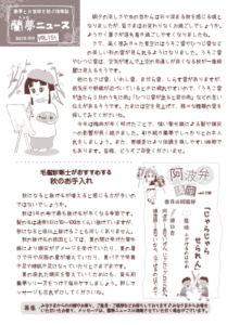 朝夕の涼しさや虫の音からは日々深まる秋を感じる頃となりましたが、皆さまはお変わりなくお過ごしでしょうか。ようやく暑さが落ち着き過ごしやすくなりましたね。