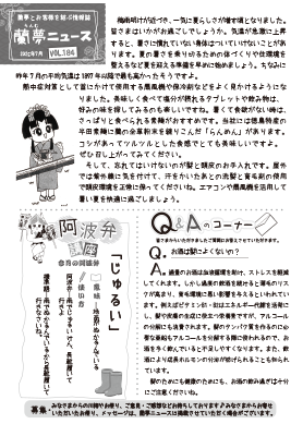 熱中症対策として首にかけて使用する扇風機や保冷剤などをよく見かけるようになりました。美味しく食べて塩分が摂れるタブレットや飲み物は、好みの味を探してみるのも楽しいですね。暑くて食欲がない時は、さっぱりと食べられる素麺がおすすめです。当社には徳島特産の半田素麺に蘭の全草粉末を練りこんだ「らんめん」があります。コシがあってツルツルとした食感でとても美味しいですよ。ぜひ召し上がってみてください。